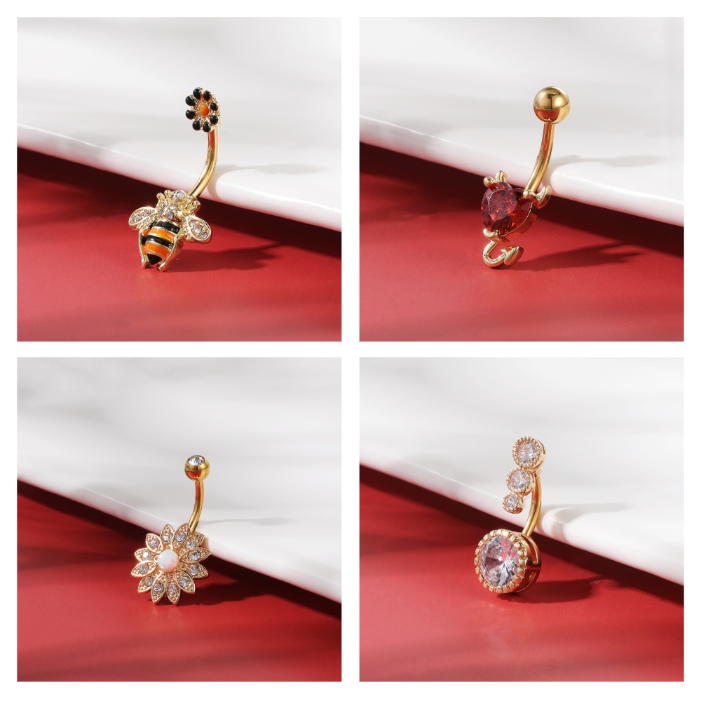 Ouro Balançar Umbigo Piercings Cristal Abelha Anéis De Aço Inoxidável Pingente Único Corpo Piercing Jóias