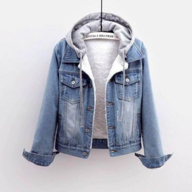 Outono E Inverno Versão Coreana Com Capuz Jaqueta Jeans Curta Para Cerdas Femininas De Algodão De Lã Espessada