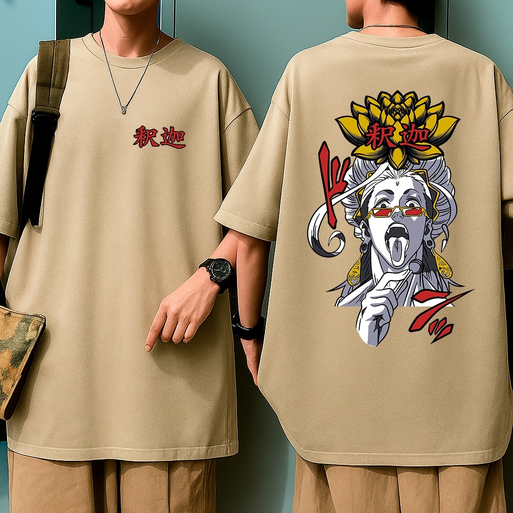 Oversized Camisa Anime Buda Indie Japonês Homem Unisex