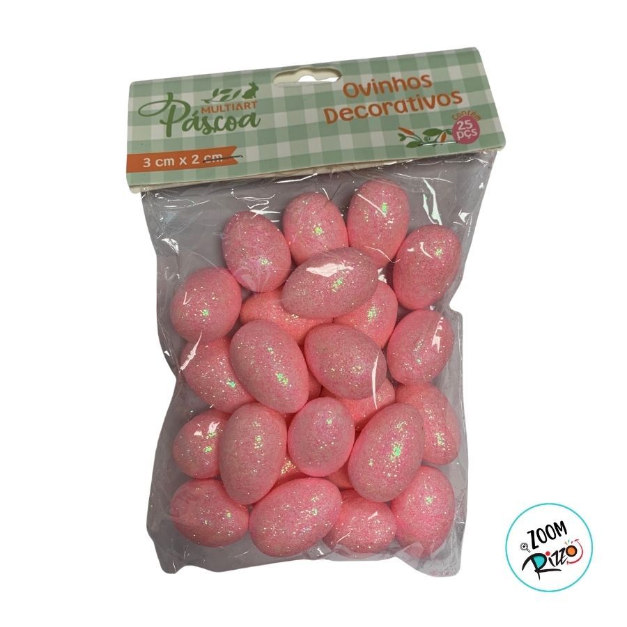 Ovinhos de Páscoa Decorativos Rosa com Glitter - 3cm - 25 unidades - Rizzo Os Ovinhos de Páscoa Rosa com Glitter traduzem delicadeza, carinho e sofisticação na decoração de Páscoa. Com tonalidade suave e acabamento cintilante, eles adicionam um toque romântico e encantador às composições, criando ambientes acolhedores e cheios de charme para celebrar a data.Perfeitos para arranjos decorativos, cestas de Páscoa, guirlandas, centros de mesa, mesas postas, aparadores, vitrines, cenários temáticos e lembrancinhas, os ovinhos de 3cm são versáteis e harmonizam facilmente com diferentes paletas e estilos decorativos. Um detalhe pequeno no tamanho, mas grande no impacto visual, ideal para decorações premium de Páscoa. Composição: Isopor Medidas Aproximadas:3x2cm Contém 25 unidades. Observações Ovinhos decorativos de Páscoa na cor rosa com glitter, 3cm, ideais para composições decorativas e cenários temáticos Dúvidas Frequentes: Quanto tempo leva o envio? ⏰ Todos os pedidos com etiqueta de envio liberado pela shopee até as 18hs são coletados no próximo dia útil pela transportadora Shopee Express. Qual o prazo de entrega? 🛵 A loja não tem acesso a parte logística da shopee. A Shopee não informa para a loja prazo de entrega. Ao clicar em comprar na opção envios é apresentado o prazo de entrega. O produto é novo? 😀 Sim. Só trabalhamos com produto novos e dentro da embalagem original do fabricante. Como faço para comprar mais de um item da loja? 🛍 No app ao lado do botão comprar tem o ícone de um carrinho de supermercado, clicando nele o produto será acrescentado no carrinho que fica na parte superior do app. Após acrescentar todos os produtos que gostaria é só clicar no carrinho e selecionar todos os itens e clicar em continuar. Comemore com Alegria: 🥰😀 Na Rizzo Distribuidora, a tradição e o encanto do nosso espaço físico no coração da 25 de março, em São Paulo, são cuidadosamente embalados para chegar até você. Permita-nos levar a magia de uma das lojas mais tradicionais da região diretamente para o conforto da sua casa ou empresa