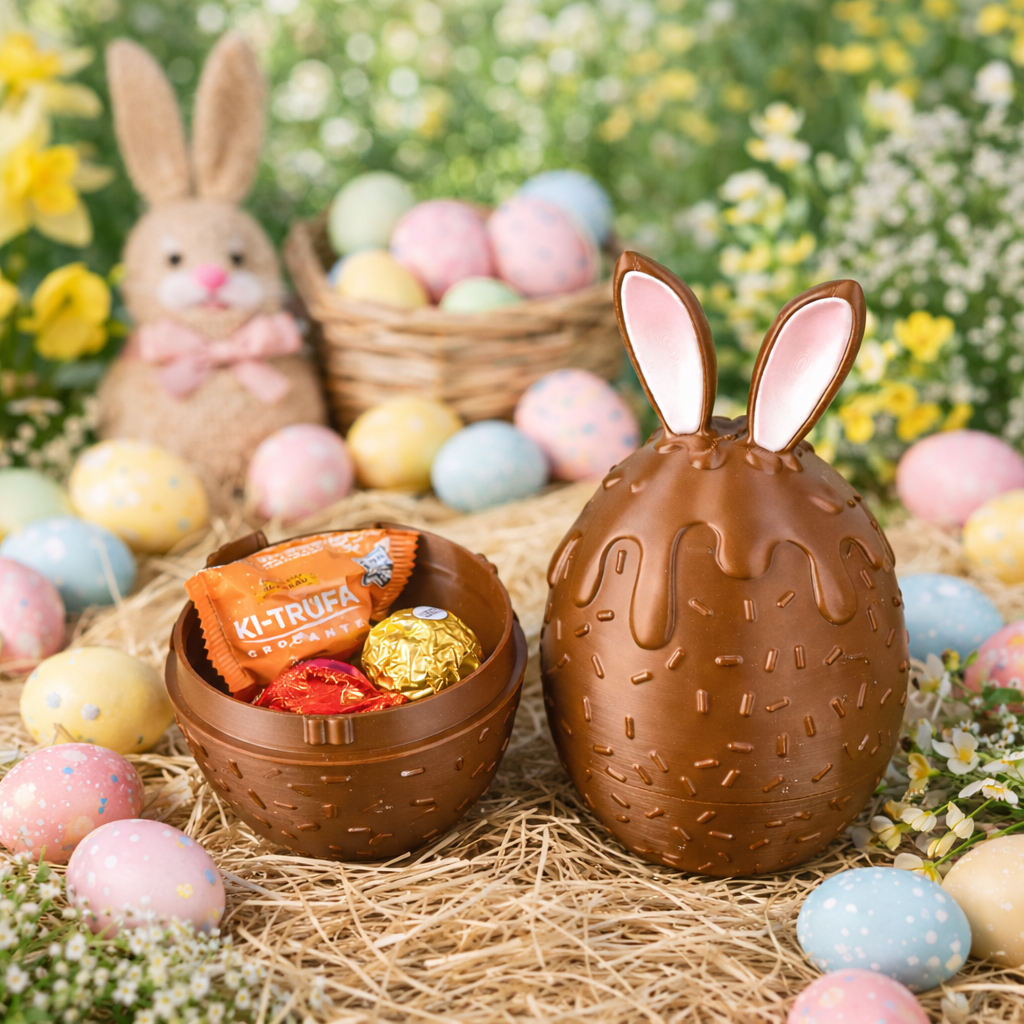 🐰 Ovo de Páscoa Porta Bombons 3D com Orelhas de Coelho Surpreenda nesta Páscoa com um presente criativo, reutilizável e fora do comum! ✨ Este Ovo de Páscoa decorativo produzido em material PLA Premium, possui um design exclusivo que simula chocolate derretido com detalhes de granulado e lindas orelhas de coelho com acabamento interno rosa. 🔸 Ao desenroscar, o ovo se abre ao meio 🔸 Ideal para colocar bombons, mini ovos ou pequenos brinquedos 🔸 Perfeito para montar kits personalizados de presente 🔸 Após a Páscoa, pode ser reutilizado como porta-objetos ou porta-brinquedos Uma lembrança diferente que vai muito além do chocolate 🍫 📏 Dimensões: Altura: 18 cm Largura: 10 cm Profundidade: 10 cm 🎁 Ideal para: ✔ Presentes de Páscoa ✔ Lembrancinhas ✔ Montagem de kits personalizados ✔ Decoração temática 💡 Presenteie com criatividade e encante crianças e adultos! 🔎 Palavras-chave ovo de páscoa decorativo ovo de páscoa reutilizável porta bombom páscoa lembrancinha de páscoa ovo de páscoa criativo presente de páscoa diferente ovo coelho decoração porta doces páscoa kit páscoa personalizado decoração de páscoa porta brinquedos infantil lembrança páscoa infantil enfeite páscoa mesa presente páscoa criativo