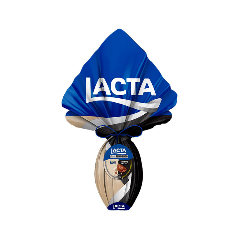 Ovo de Páscoa Diamante Negro e Laka. Peso Líquido 494g. Nessa Páscoa, presenteie quem você ama com os Ovos Lacta! Você vai se deliciar do primeiro ao último pedaço.Celebre e confraternize nessa maravilhosa época do ano e garanta momentos deliciosos para você e sua família. Ingredientes: Açúcar, manteiga de cacau, soro de leite em pó, leite em pó integral, massa de cacau, gordura vegetal, glicose, extrato de malte, mel, gordura de manteiga desidratada, açúcar invertido, castanha-de-caju, emulsificantes: lecitina de soja e poliglicerol polirricinoleato e aromatizante. alérgicos: contém castanha-de-caju E derivados de leite, soja E cevada. pode conter amêndoa, avelã, amendoim, trigo E látex natural. contém lactose. contém glúten.