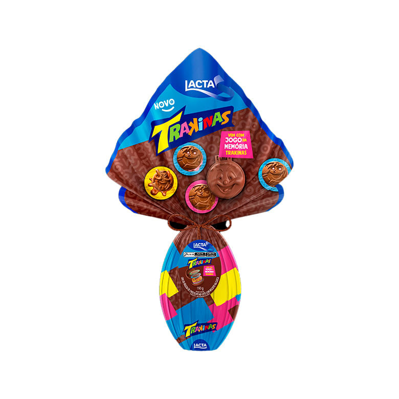 Ovo de Páscoa ao Chocolate ao Leite Trakinas Lacta 190g Vem com Jogo da Memória combina o cremoso chocolate ao leite com biscoito na casca e ainda vem com um divertido Jogo da Memória Trakinas. Imagens meramente ilustrativas.Todas as informações divulgadas são de responsabilidade do Fabricante/Fornecedor.