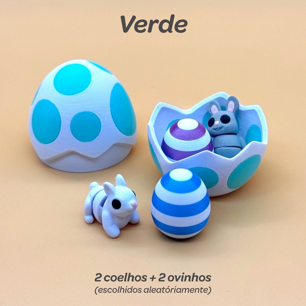 🥚🐰 Ovos de Páscoa Surpresa! 🐇 Cada ovo contem: 2 coelhinhos e 2 ovinhos surpresa! (sem repetidos) Tamanho do ovo: 7,3cm x 6,2cm 🐙 Brinquedos fabricados em plástico colorido com muito carinho para você. ⚠️ Cuidado: depois de comprar o primeiro você vai querer todos! Material: Plástico PLA (não tóxico) 🚚 Comprando até 13h enviamos no mesmo dia! 👀 Wiggles - divertidos, colecionáveis e apaixonantes! 😍 🧒 Produto recomendado para maiores de 3 anos.