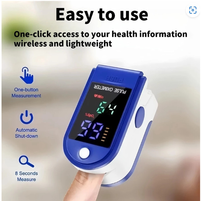 O oxímetro pode ser usado para medir a saturação de oxigênio, a taxa de pulso através do dedo. O produto é adequado para cuidados familiares, pessoais, esportes e etc. Características: [Multifuncional] O oxímetro de pulso mede principalmente a saturação de oxigênio e a frequência do pulso. É adequado para cuidados familiares, pessoais, esportes e etc. Além disso, também é adequado para idosos com mais de 60 anos, pessoas que trabalham mais de 12 horas por dia. [Como usar] Ligue o oxímetro de pulso, coloque um dos dedos no orifício de silicone do oxímetro. Em seguida, solte o grampo, pressione o botão, o oxímetro entrará no estado de funcionamento. O oxímetro entrará automaticamente no modo de espera ou de repouso após 8 segundos sem um dedo nele. [Exibição mais rápida] O oxímetro adota tecnologia de detecção avançada, os resultados do teste serão exibidos na tela após 5s. Não precisa esperar. [Tela OLED] Baixo consumo de energia, tela OLED clara, 2 direções podem ser ajustadas para facilitar a leitura. Mesmo os idosos também podem ler com precisão e facilidade os valores dos oxímetros. Conveniente e compacto, com cordão, portátil para uso doméstico ou em viagens. Especificações: Item: oxímetro de pulso na ponta do dedo Tipo de exibição: Display OLED Faixa de medição de SpO2:0% -100% (1% de resolução) Precisão de SpO2: mais ou menos 2% no estágio de 70%-100%, sem sentido no estágio de menor que 70% Faixa de medição PR: 25BPM-250BPM (resolução de 1BPM) Bateria: 2 pilhas AAA de 1,5V (NÃO incluídas) Material principal : Resultados do teste de ABS : 5S Desligue automaticamente : 8S Tamanho do item: 5,7* 3,1* 3,1 cm Tamanho do pacote: 9* 6,2* 3,8 cm Peso da embalagem: 45g Nota: * Não opere a unidade se ela estiver úmida ou úmida devido à condensação ou derramamento. Evite usar o equipamento imediatamente após movê-lo de um ambiente frio para um local quente e úmido. * O esmalte de unhas ou as unhas postiças podem causar leituras imprecisas de SpO2 Lista de pacotes: 1 * Oxímetro de pulso na ponta do dedo 1 * Cordão 1 * Manual do usuário (inglês)
