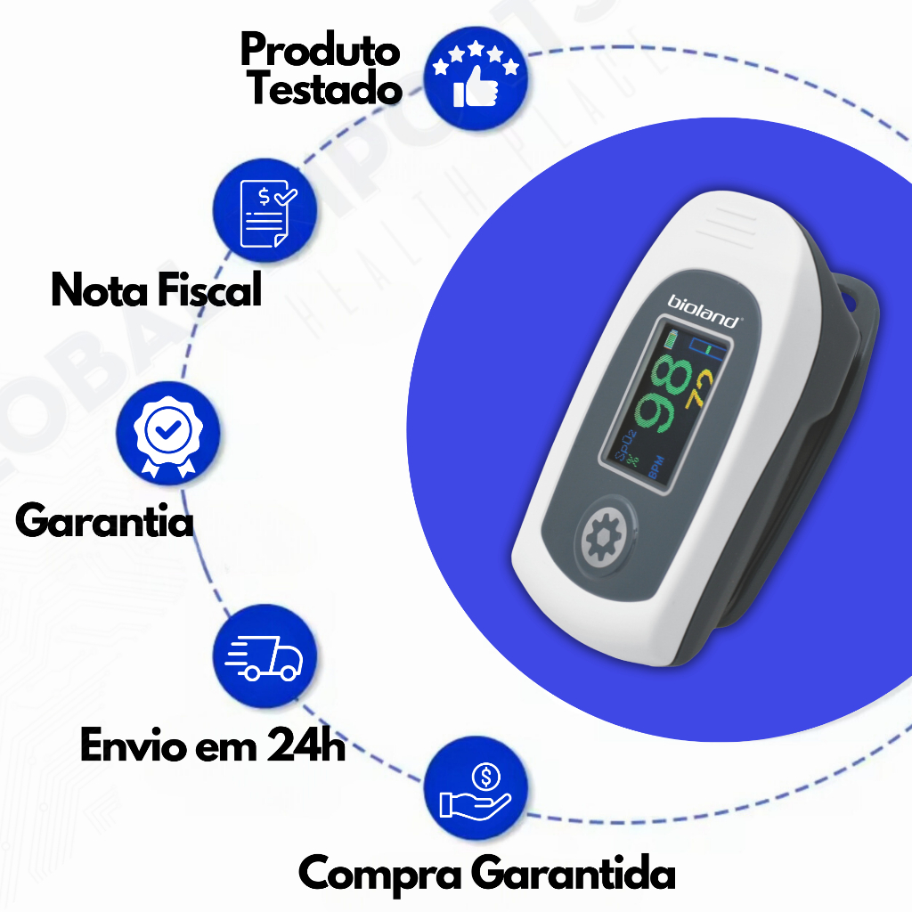 Oximetro Digital De Pulso Para Dedo Saturação De Oxigênio Profissional Original Bioland Adulto