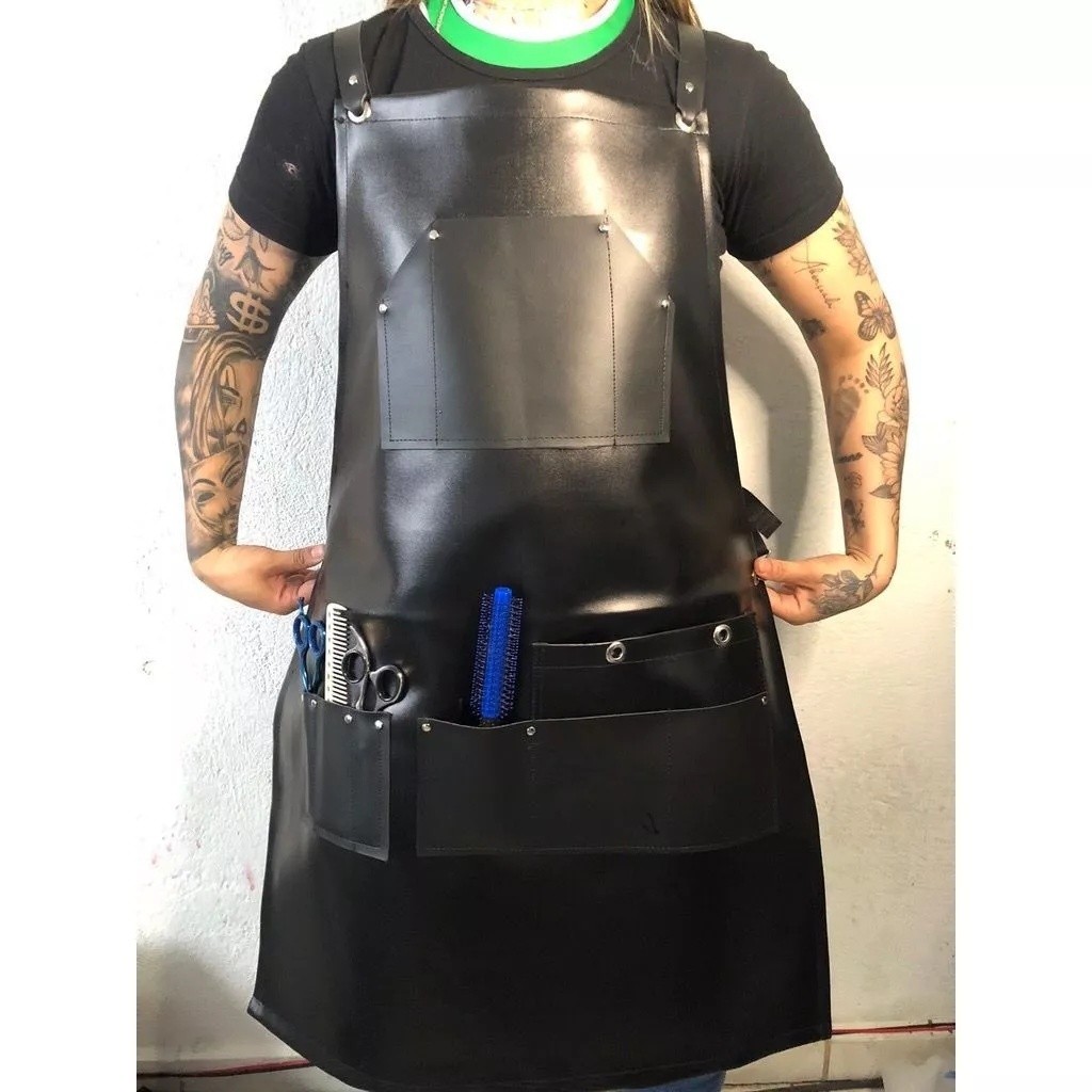 Avental Profissional perfeito para churrasco, barbeiro, barman, barista, bistrô e todos aqueles que trabalham em um ambiente criativo. Feito com tecido brim robusto e resistente, com acabamento fino e moderno e com alças cruzadas em camurça e tamanho ajustável. - Produzido em tecido brim robusto e resistente. - Churrasqueiro, barbeiro, bartender, barista, bistrô, tatuador, cozinha, salão e etc. - Avental de corpo inteiro - Alças cruzadas com mosquetões e com regulagem de tamanho feito em courino. - Bolsos e detalhes em courino, acabamento fino e elegante com mosquetões, ilhós e rebites - Tamanho: 60x80cm. * CORES E MODELOS ENVIADOS ALEATORIAMENTE