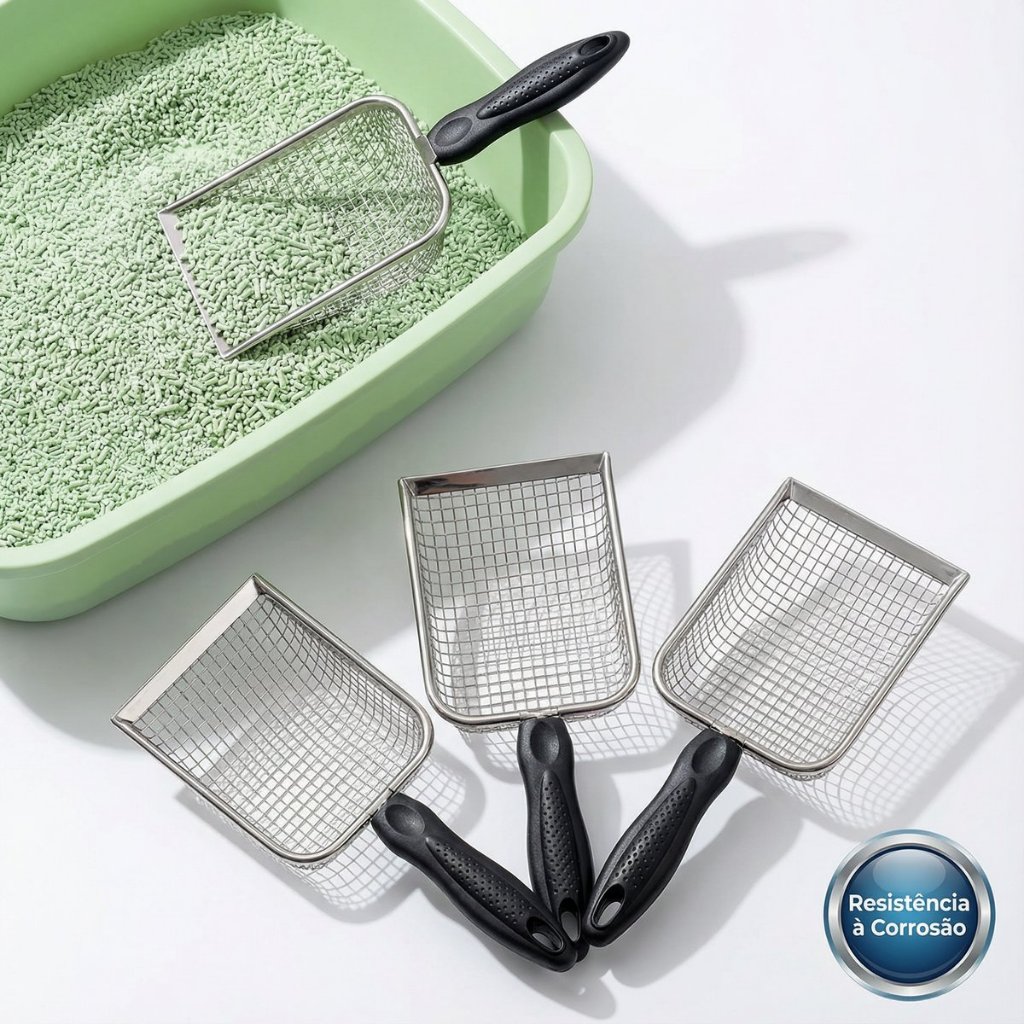 Pá de Areia de Gato em Aço Inox com Trama Fina – Peneiração Precisa e Limpeza Resistente