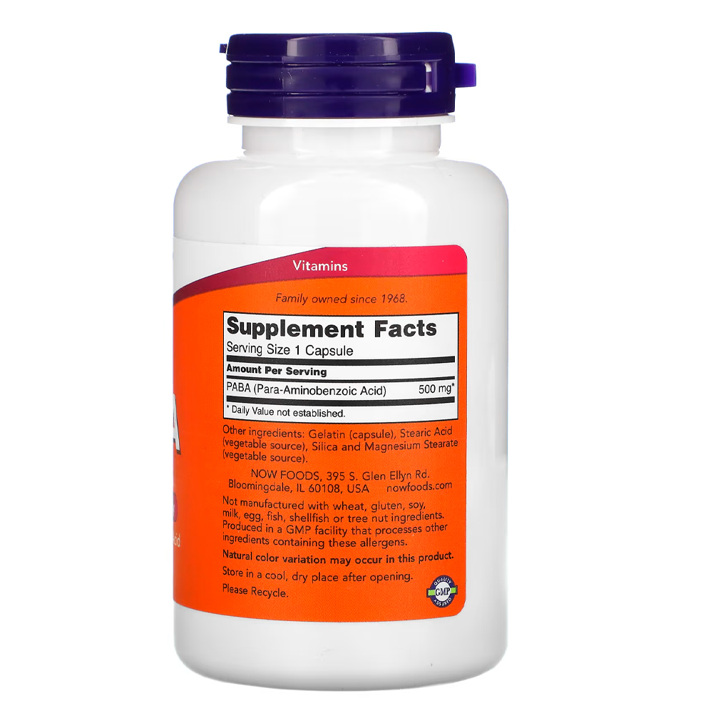 Paba 500mg Now Foods 100 Cápsulas Porta Cápsulas