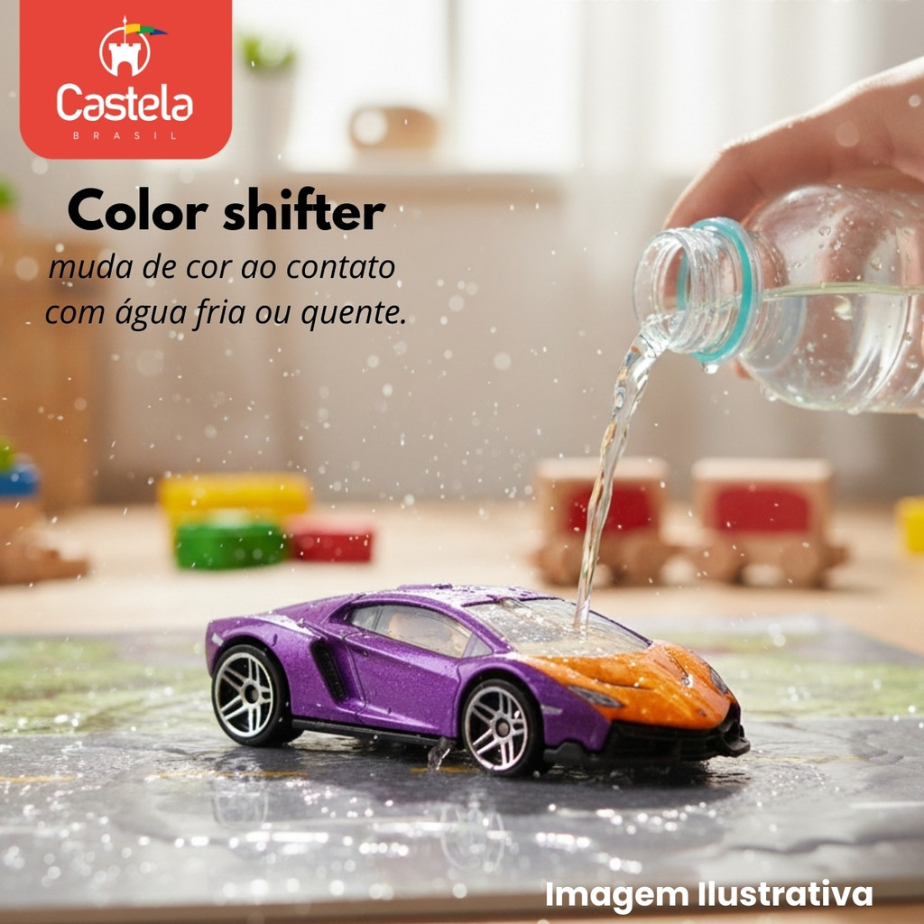 DESCRIÇÃO DO PRODUTO Transforme a brincadeira em uma experiência ainda mais divertida com o Pack com 4 Carrinhos Esportivos em Miniatura da Castela! Na escala 1:64, esses carrinhos são feitos em metal (die-cast), possuem detalhes realistas e contam com a incrível tecnologia Color Shifter, que muda de cor ao contato com água fria ou quente. Uma surpresa a cada corrida! CARACTERÍSTICAS TÉCNICAS: Conteúdo da Embalagem: 1 Pack com 4 carrinhos miniatura Dimensões Aproximadas do Produto: 2,5cm x 3cm x 6,5cm (Altura x Largura x Comprimento/Profundidade). Dimensões Aproximadas da Embalagem: 6cm x 12cm x 29cm (Altura x Largura x Comprimento/Profundidade). Material/Composição: Metal/Plástico Idade Mínima Recomendada: A partir de 3 anos Participantes: A partir de 1 ou mais pessoas Alimentação: Não se aplica Marca: Castela Referência: CBS0631 Outras informações: As cores podem variar entre as imagens mostradas acima e o produto. Imagens meramente ilustrativas. Aviso: As informações e imagens divulgadas são de total responsabilidade do fabricante/fornecedor. Produto lacrado e disponível a pronta entrega para todo Brasil! APROVADO PELO INMETRO