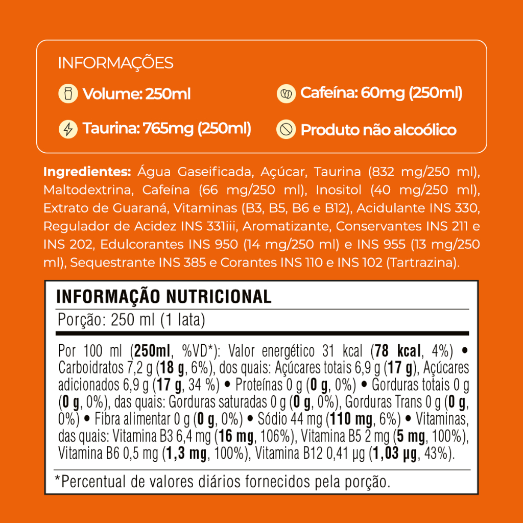 Pack Energético Baly Energy Drink Tangerina 250ml