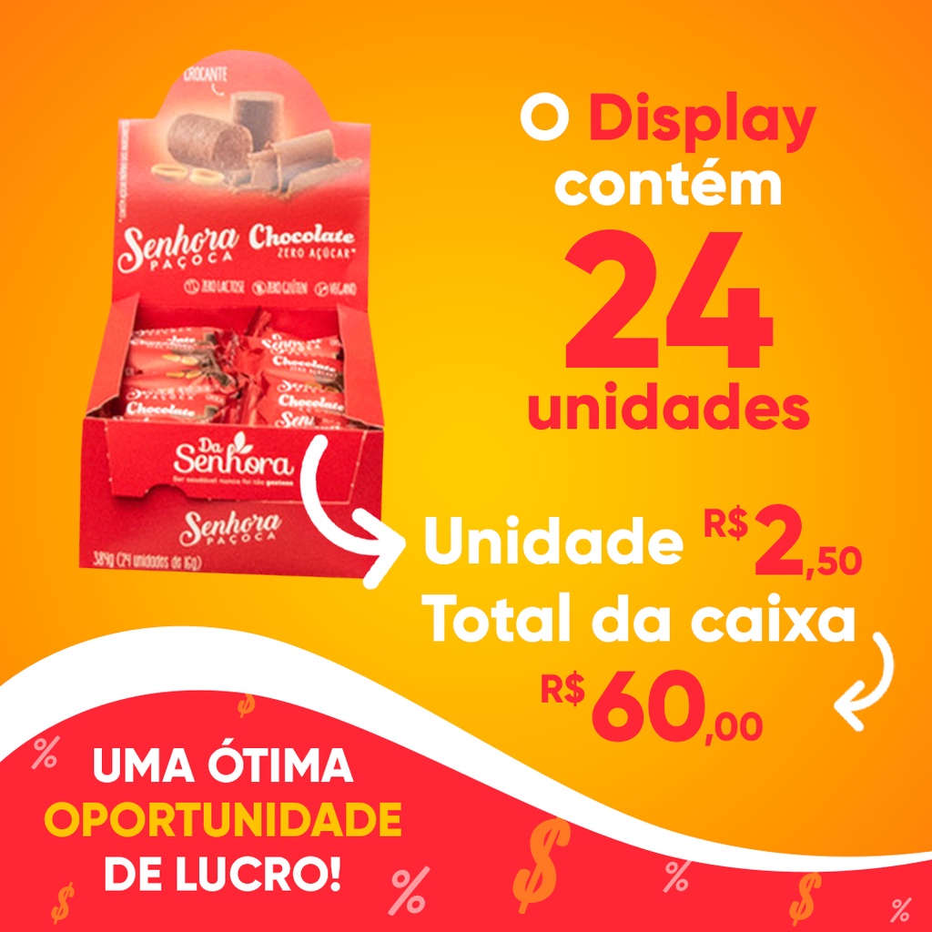 | Paçoca Chocolate Zero Açúcar Sem Lactose KIT 3 Caixa C/ 24un este produto | R$ 104,95 | 30% | 5.0/5 | — |