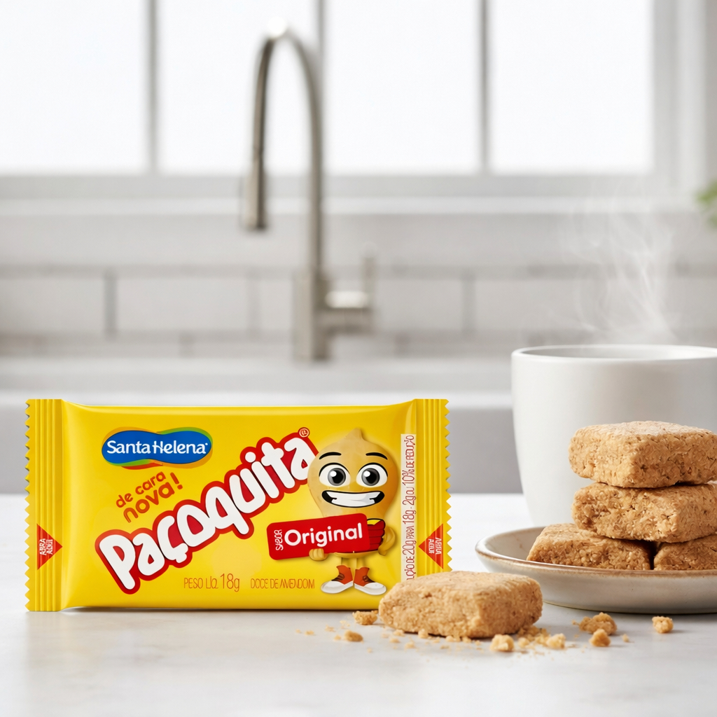 Paçoca Quadrada Embalada Paçoquita C/36 Unidades 18g – Santa Helena A paçoca mais amada do Brasil em formato prático e irresistível! A Paçoquita Santa Helena quadrada é feita com amendoim selecionado, textura macia e sabor inconfundível, perfeita para qualquer ocasião. O Tradicional doce de paçoca brasileiro à base de amendoim, a Paçoquita é líder nacional no seu segmento e conquista consumidores e clientes a cada dia. Graças ao seu diferenciado sabor e um rigoroso controle de qualidade e de matéria-prima, é um produto apreciado por consumidores de todas as idades. Contém 36 unidades de 18g cada embaladas individualmente totalizando 648 gramas. Ingredientes: amendoim, açúcar e sal. Alérgicos: contém amendoim. Não contém glúten. Informação Nutricional: Porção de 18g (1 unidade) Valor Energético 96kcal (5%) Carboidratos 9g (3%)Açúcares Totais 8,6g Açúcares Adicionados 8,1g (16%) Proteínas 3,2g (7%)Gorduras totais 5g (8%) Gorduras saturadas 0,7g (4%) Gorduras trans 0g (0%) Fibra alimentar 0,7g (3%) Sódio 33mg (2%)