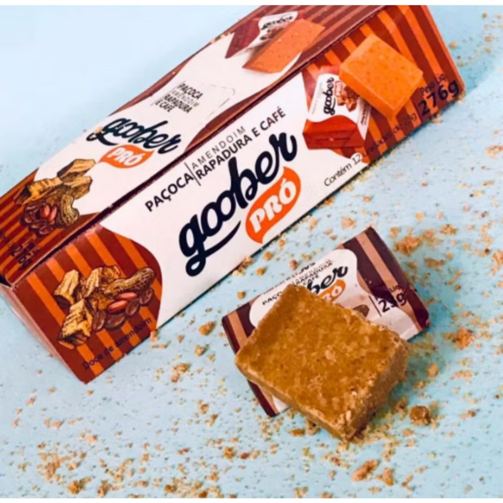 Descrição Geral Sabia que a rapadura é uma excelente fonte de energia? Além de auxiliar no combate ao cansaço físico e mental, a rapadura combinada ao café pode melhorar sua performance em todas as atividades do dia a dia, trazendo para você muito mais disposição ao trabalho e estudos, melhorias no rendimento dos seu treinos, rapidez na queima de gorduras, entre outros benefícios. O melhor de tudo é que você pode levar essa delícia para te acompanhar em qualquer momento. Experimente a sua paçoca Goober Pró. Ingredientes Amendoim torrado, rapadura, café solúvel e sal. Não contém glúten. Alérgicos: contém amendoim TABELA NUTRICIONAL Quantidade por porção de 20 g %VD (*) Valor energético 103 kcal = 433 kJ 5% Carboidratos 8,1 g 3% Proteínas 3,4 g 5% Gorduras totais 6,5 g 12% Gorduras saturadas 1,0 g 5% Gorduras trans 0 g 0% Fibras alimentares 1,2 g 5% Sódio 49 mg 2% * % valores diários de referência com base em uma dieta de 2000 kcal ou 8400 kJ. Seus valores diários podem ser maiores ou menores dependendo de suas necessidades energéticas. ** VD não estabelecido. Características Zero açúcar: Não Vegano: Sim Lactose: Não Glúten: Não