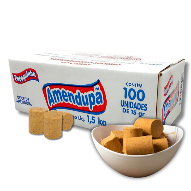 | Paçoca Rolha Amendupã Caixa com 100 unidades 1,5Kg | R$ 29,99 | 10% | 4.9/5 | 911 |