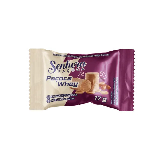 A clássica paçoca ganhou uma versão funcional: com whey protein, sem adição de açúcar e sem glúten! Ideal para quem busca um doce com perfil nutritivo, cada unidade contém 4g de proteína e é perfeita para lanches rápidos, pós-treino ou dietas com restrição de açúcares. A Paçoca Whey une sabor, praticidade e benefícios funcionais! ℹ Benefícios: ✅ 4g de proteína por unidade (Whey Protein) ✅ Sem adição de açúcar – ideal para dietas restritivas ✅ Não contém glúten ✅ Baixo teor de carboidratos (apenas 5,8g por unidade) ✅ Textura macia e sabor irresistível de amendoim ℹ Ficha Técnica: ✅ Produto: Paçoca Whey com Proteína ✅ Marca: Senhora Paçoca ✅ Peso por unidade: 17g ✅ Quantidade: Caixa com 24 unidades (408g total) ✅ Ingredientes: Amendoim torrado, whey protein, flocos de arroz, sal rosa e sorbitol ✅ Alérgicos: Contém amendoim, lactose e pode conter derivados de soja ✅ Conservação: Local seco, arejado e sem exposição solar ✅ Indicado para: Lanches saudáveis, atletas, dietas low carb