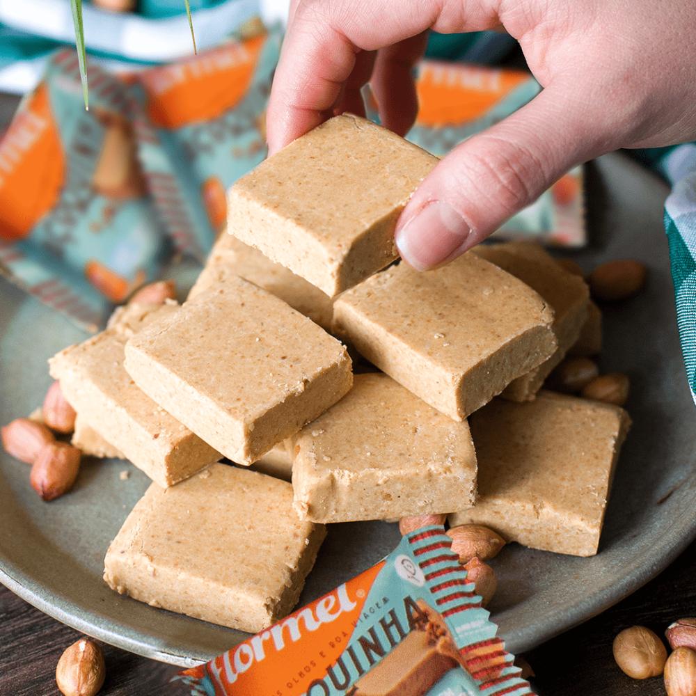 A nossa paçoquinha tem aquele sabor típico brasileiro incrível e ainda vem com alguns diferenciais: com 68% de amendoim, ela é adoçada com Taumatina, que é um adoçante natural de origem vegetal, é rica em cálcio, fonte de fibras e não possui glúten em sua composição. Aqui você encontra 24 unidades dessa deliciosa paçoca Flormel. Elas são perfeitas para a sobremesa, para acompanhar o café ou para usá-las conforme a sua imaginação mandar! Contém: 1 display com 24 unidades. Cada unidade tem 20g.