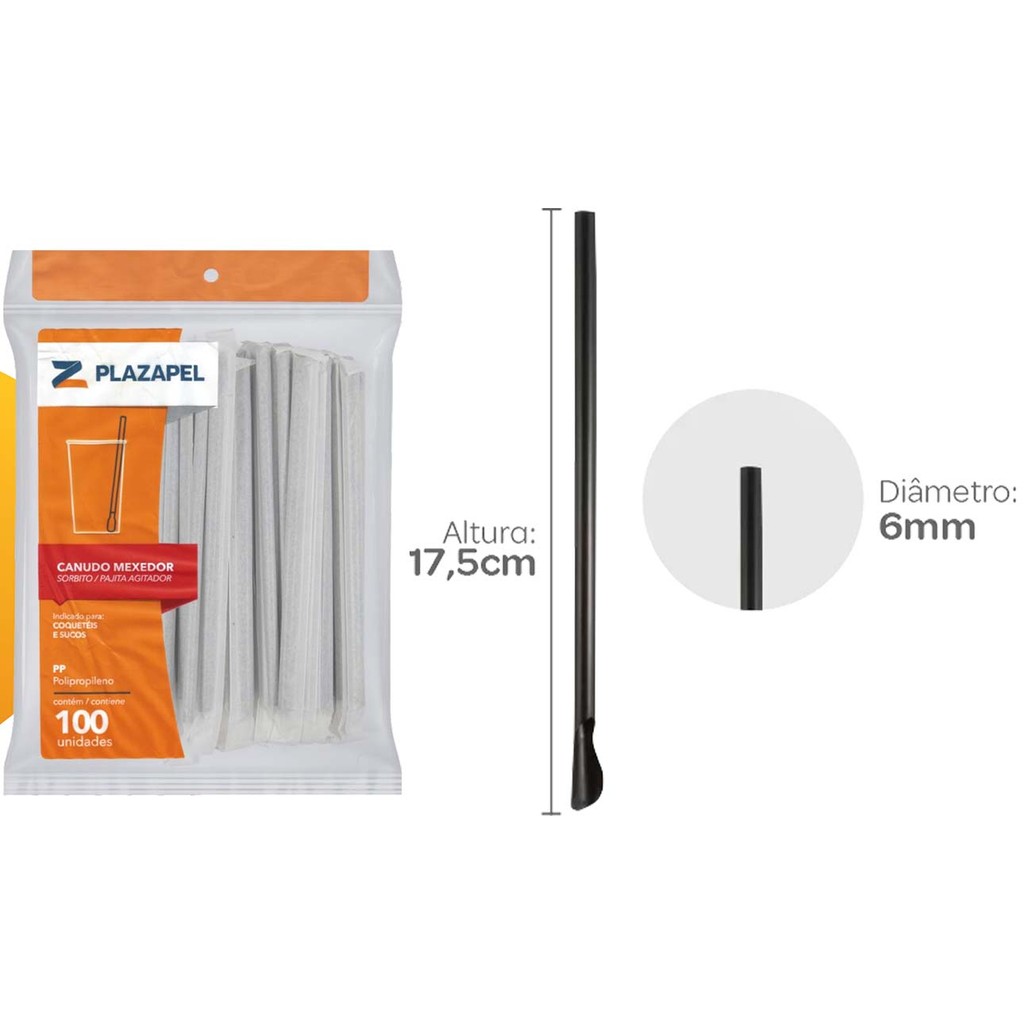 Canudo Colher Mexedor Para Drinks Caipirinha 6mm Misto - Pacote 100 Unidades A Plazapel possui uma linha completa em descartáveis, entre copos, copos de festa, canudos tradicional e biodegradável. O Canudo Mexedor possui design diferenciado, funcionando como uma colher, especial para beber caipirinhas, drinks com frutas e bebidas densas. Canudo com sachê (embalado individualmente), garante a higiene da fabricação ao momento do uso. Utilização: Bebidas em geral, Caipirinhas, Coqueteis, Drinks com frutas e outros. Detalhes do produto: > Modelo: Canudo Colher Mexedor em Sachê > Tamanho: Ø 6 x 175 mm > Contém: 100 Unidades - Embalados individualmente > Cor: Misto - Marca: Plazapel Vantagens de comprar na Brester: - Nota fiscal para Pessoa Física e Pessoa Jurídica. - Produto novo, com garantia de fábrica. - Produto a pronta entrega. - Envio em até 24hs em dias úteis após confirmação do pagamento. Obrigado por escolher a Brester.