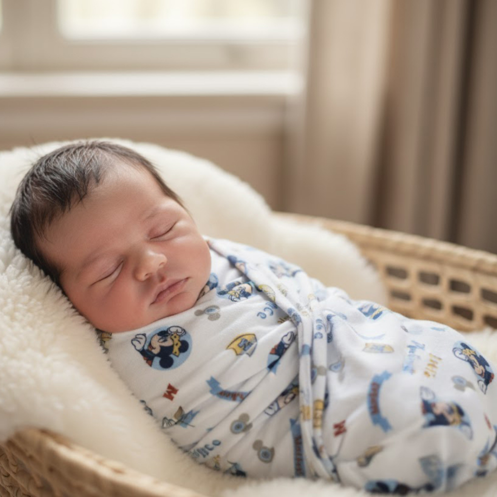 Pacote 5 Fraldas de Pano Bebê Disney Luxo 100% Algodão Tecido Duplo | Kit Fralda de Ombro Grande Alta Absorção 70 x 70cm