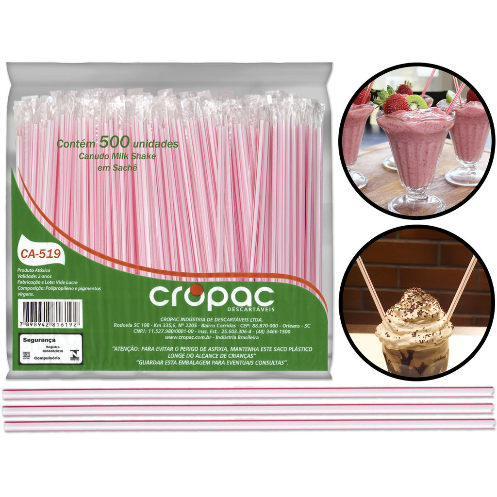 Olá, Bem vindo a Distribuidora Brester. Trabalhamos com uma grande variedade de ferramentas elétricas e manuais, descartáveis, eletroeletrônicos, artigos para casa, artigos de petshop e outros. Aqui você encontrará Produtos Originais, Nota Fiscal, Pronta Entrega e Envio Imediato! * Características do produto * Pacote Canudo Milkshake Sachê 21cm x 5mm Cropac 500 Unidades Se você é fã de milk shakes, sorvetes, açaí ou bebidas densas, a marca Cropac tem a solução certa para você! Os Canudos 500un 5,8 x 205mm da Cropac vão mudar o seu dia a dia para melhor, lhe oferecendo momentos de deliciosa experiência gastronômica diariamente. Além de práticos e modernos, os canudos permitirão que você desfrute de suas bebidas no jeito certo! Não espere mais! Escolha os canudos Cropac e experimente a melhor experiência de sabor e praticidade que você pode ter! Características Técnicas: > Canudo Milkshake Sachê; > Material: Plástico PP (Polipropileno) e pigmentos virgens; > Contém: 500 unidades - Embalados individualmente; > Cor do Produto: Branco Com Listras; > Embalagem em cor única: Transparente; > Diâmetro: 5,8mm; > Comprimento: 20,5cm; > Modelo: CA-519; > Marca: Cropac Vantagens de comprar na Brester: - Nota fiscal para Pessoa Física e Pessoa Jurídica. - Produto novo, com garantia de fábrica. - Produto a pronta entrega. - Envio em até 24hs em dias úteis após confirmação do pagamento. Obrigado por escolher a Brester Máquinas.