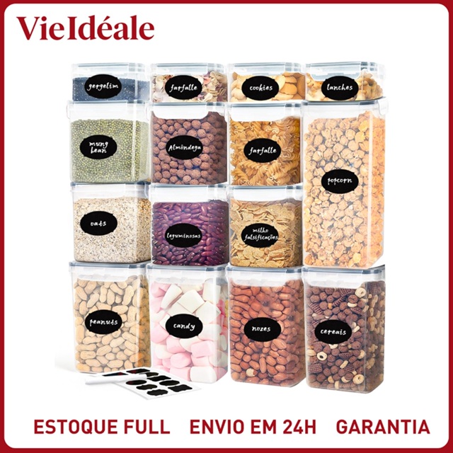 Sobre este item Ajudam a organizar sua cozinha e despensa — Imagine entrar na cozinha ou despensa e encontrar tudo sempre organizado. Adeus bagunça. Você encontrará tudo o que precisa rapidamente. Com o design empilhável e compacto, estes recipientes ajudarão a usar eficientemente cada centímetro dos seus armários da despensa e da cozinha. 4 combinações de tamanho que atendem às suas necessidades. Nosso conjunto de recipientes de armazenamento de cozinha contém 4 tamanhos diferentes. Inclui 1 recipiente alto (2,8 l), 4 recipientes grandes (2,0 l), 6 recipientes médios (1,4 l), 4 recipientes pequenos (0,8 l). Perfeitos para armazenar espaguete, utensílios de cozinha, cereal, farinha, açúcar, aveia, macarrão, arroz, café, chá, salgadinhos, nozes e outros produtos secos. Os recipientes herméticos mantêm os alimentos frescos. As tampas com bloqueio lateral e vedação de silicone garantem o fechamento hermético destes recipientes e a tampa abre facilmente. O sistema de armazenamento hermético manterá seus alimentos sempre secos e frescos. Todos têm as mesmas tampas para facilitar a lavagem e a reutilização. Material sem BPA e de grau alimentício: os recipientes de armazenamento da são feitos de plástico durável, sem BPA, e têm uma vida útil mais longa do que os recipientes de plástico de muitas outras marcas. Os recipientes transparentes permitem ver o que está dentro, você pega o que deseja sem precisar abrir cada recipiente. 20 etiquetas reutilizáveis. Além dos 15 recipientes de armazenamento de alimentos secos, você também receberá 20 etiquetas. Elas são reutilizáveis, você pode alterar as informações sempre que precisar. Basta limpar com um pano úmido para apagar o que você escreveu, remover a etiqueta e colar novamente. Descrição do produto Grau de qualidade do produto: grau alimentício. Material da tampa: plástico + silicone. Material do recipiente: plástico. Características: reciclável/saudável/empilhável/apto para freezer/apto para micro-ondas Conteúdo da embalagem: 1 recipiente alto (2,8 l) 4 recipientes grandes (2,0 l) 6 recipientes médios (1,4 l) 4 recipientes pequenos (0,8 l) 20 etiquetas de lousa Instruções de lavagem: o recipiente pode ser lavado na lava-louças. Lavar a tampa à mão Características do produto: Reutilizável e durável ---- Feito de plástico e silicone de grau alimentício premium, estes recipientes ajudarão você a organizar melhor sua cozinha. 100% à prova de vazamento ---- Com o ótimo desempenho de , os recipientes herméticos de armazenamento de alimentos da não permitem a entrada de ar ou de insetos. Ajuste firme, mas fácil de abrir ---- Tampas com bloqueio nas 4 laterais selam estes recipientes de armazenamento firmemente, mas você pode abrir e fechar esses recipientes facilmente.