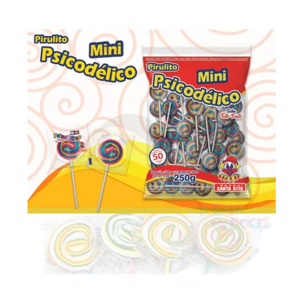 Pacote De Pirulito Mini Psicodélico Festa C/50 Unidades Santa Rita