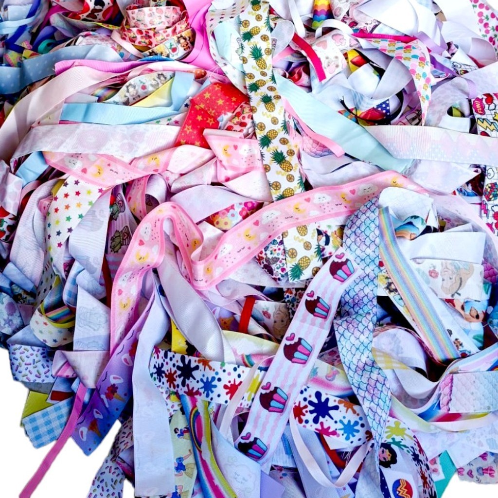 Pacote de Retalhos de Fita Gorgorão para Laços - Kit Materiais para Laços - 100 gramas Fita Estampada e Lisa
