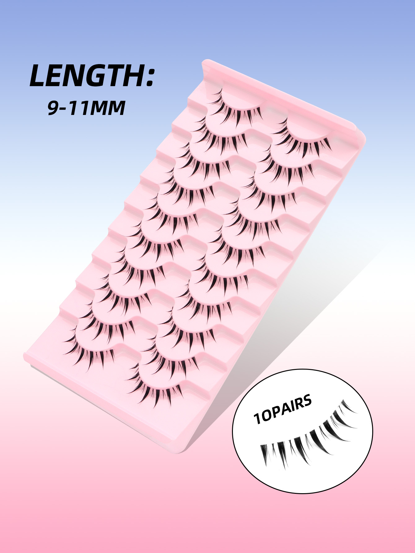 Pacote Econômico De 10 Pares De Cílios Mangá Naturais De Banda Transparente – Ajuste Duplo Para Datas Diárias/Festas , A