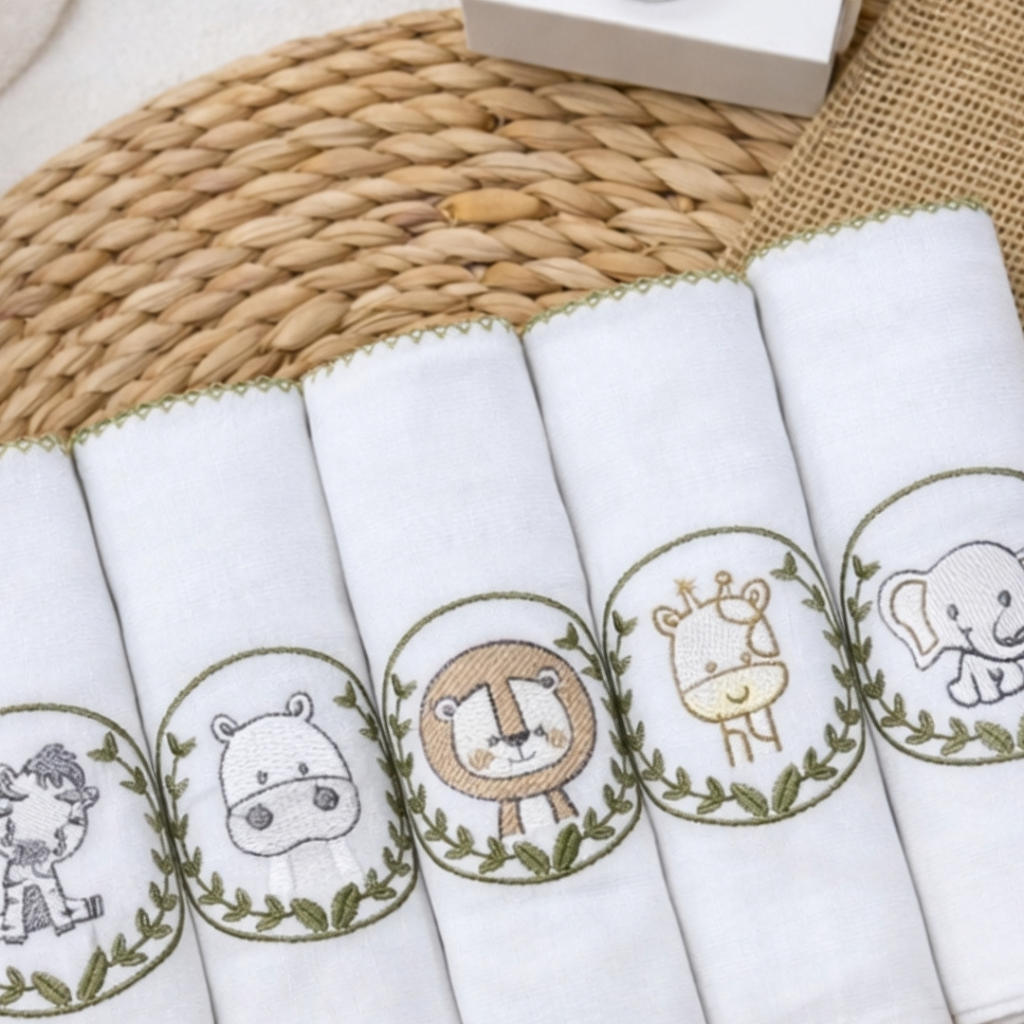 Pacote Fraldas de Pano Bordada Luxo | Meninos e Meninas | Fralda Pano Bordada de Bebê | 100% Algodão