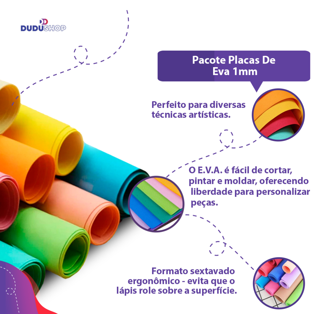 Pacote Placas De Eva 1mm 40x48 Com 10 Folhas Eva Liso Para Artesanato Atividades Escolares