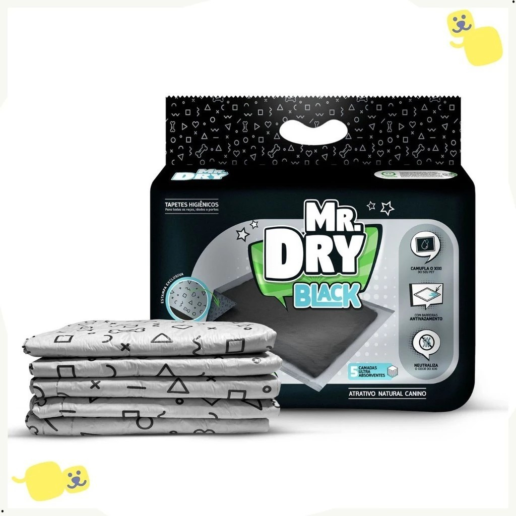Pacote Tapete Higiênico MR DRY Black Cães com 30 Unidades 80X60g Atrativo Natural Ativo 5 Camadas