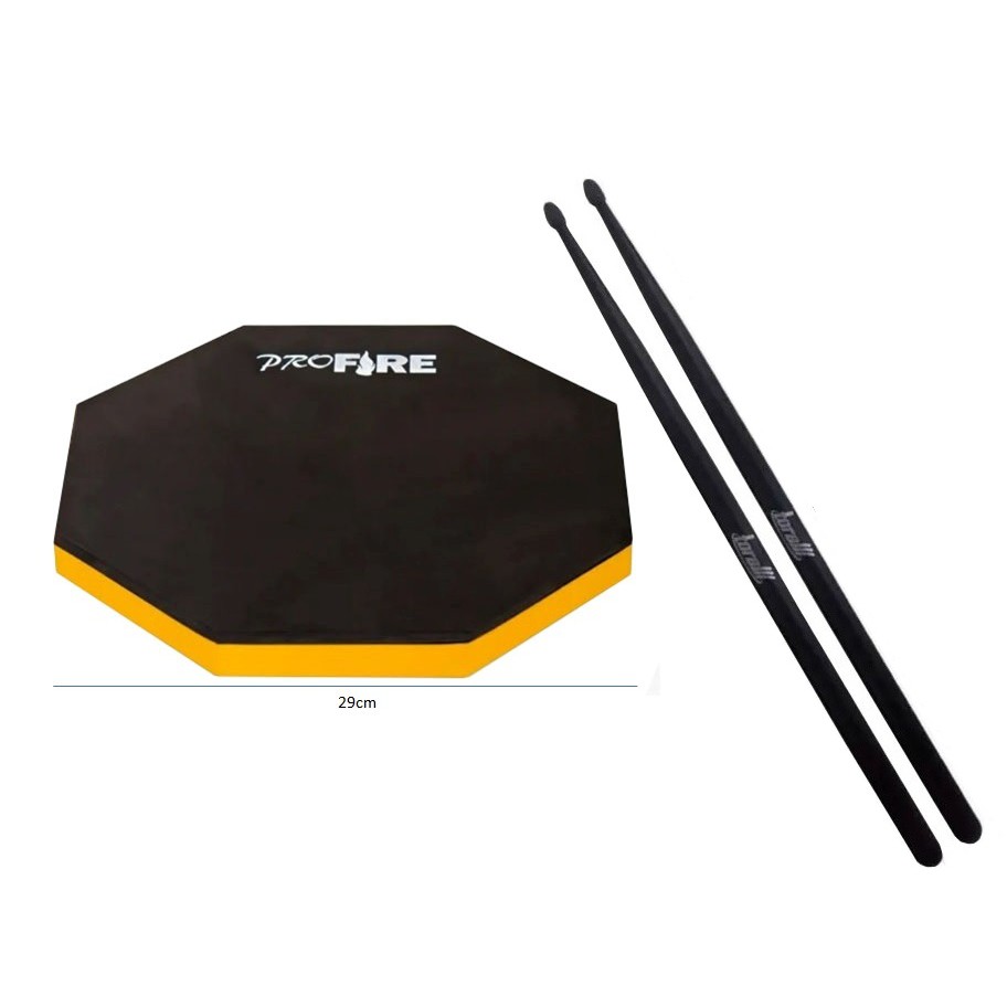 Pad Estudo Treino Praticável Bateria 10" + Par Baqueta Fibra