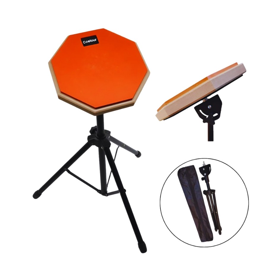 Pad Liverpool Borracha Estudo Bateria 8' Pedestal Regulável - Laranja