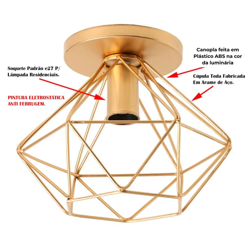 Paflon Lustre Teto Industrial Retrô Aramado Diamante Redondo Luminaria