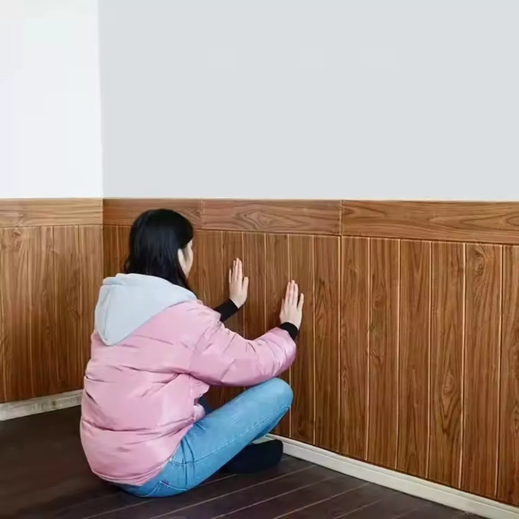 Painéis Autocolantes de Parede com Textura de Madeira Ripada 3D Impermeavel 70x70 cm