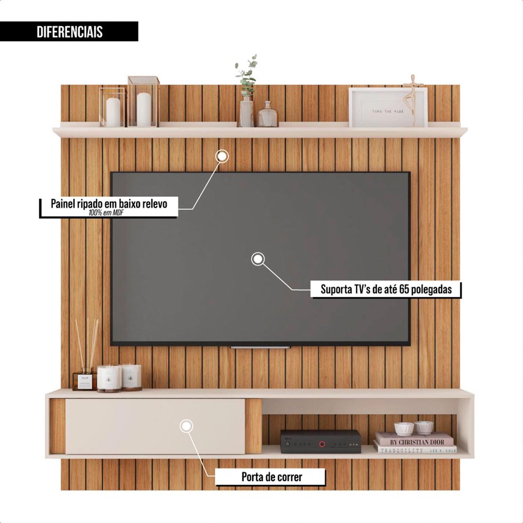 O Painel Sena 1.8 é ideal para completar sua sala de estar, pois é robusto, elegante e com design moderno. Suporta TV's até 65 Polegadas, além de espaços inferiores que suportam objetos do seu desejo. Feito MDP possui maior resistência e durabilidade do movel. Dimensões do Produto: Altura: 183 cm Largura: 180 cm Profundidade: 29,7 cm Peso: 59,55 - Possui 2 Prateleira - Suporta TV's até 65 Polegadas - Possui 2 Nichos com amplo espaço - Possui 1 Porta de correr - Acompanha manual de montagem - Contém furação para passagem de fios - Tonalidade do Produto: Buriti / Off White Perfect - Estrutura em MDP de 15mm de espessura. Peso suportado: - Tampo 20kg - Painel 25kg - Prateleira 5kg - Nichos 5kg (cada) - Garantia 90 dias contra defeito de fabricação - Este móvel chegará em sua casa separado em 2 volume 1 Volume Altura: 4,7 cm Largura: 189,2 cm Comprimento: 91,5 cm 2 Volume Altura: 8,7 cm Largura: 186,1 cm Comprimento: 31,9 cm Recomendações de limpeza: - Limpar com pano macio, seco ou úmido, sem uso de produtos abrasivos. Pois, podem trazer danos ao produto. Sobre a entrega: - As transportadoras contratadas, não realizam entregas em apartamentos. Realizando assim a entrega na portaria do prédio. *Produto segue desmontado, montagem por conta do comprador. *Imagens do produto são meramente ilustrativas.
