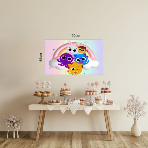 Painel Bolofofos Arco íris retangular de lona para decoração de festa de aniversário infantil. Várias medidas.