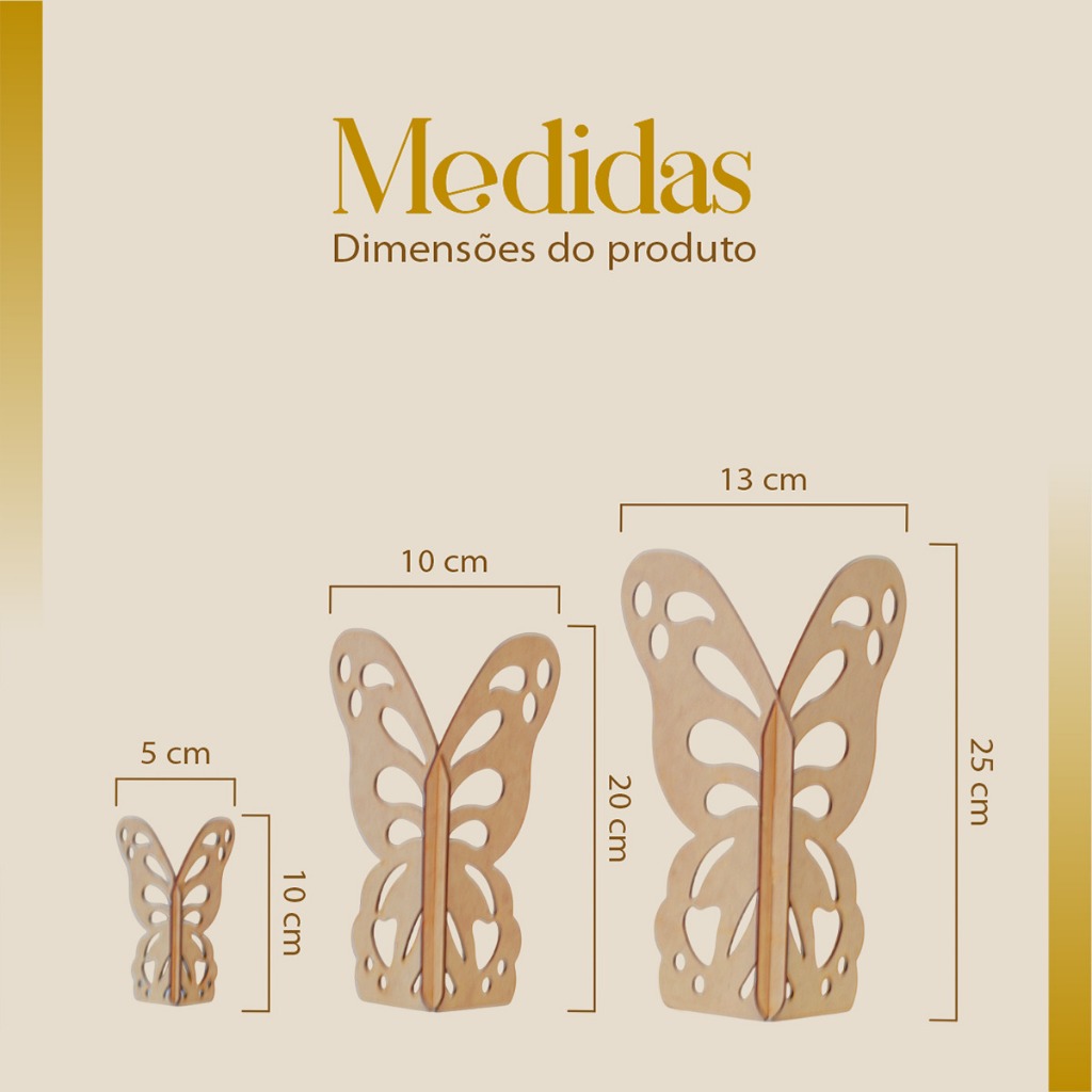 Borboleta para Decoração de Painel em MDF 6 mm – Dobrável | Festa e Decoração A Borboleta para Decoração de Painel em MDF é ideal para compor cenários criativos e elegantes em festas, eventos e decorações em geral. Produzida em MDF cru de 6 mm, possui acabamento versátil, perfeita para pintura, personalização e projetos artesanais. Seu modelo dobrável permite criar efeito 3D, trazendo leveza e destaque para painéis, paredes, mesas decorativas e fundos fotográficos. Indicada para festas infantis, aniversários, casamentos, chás, eventos corporativos e decoração de ambientes. Opções disponíveis para compra: - Borboleta 30 cm - Borboleta 70 cm - Borboleta 90 cm - Kit borboleta 70 + 30 cm - Kit borboleta 90 + 70 cm - Kit borboleta 90 + 70 + 30 cm - Kit 3 Borboletas de chão + 3 borboletas de mesa Um item decorativo versátil, moderno e personalizável, ideal para criar composições impactantes e cheias de charme. RH Variedades