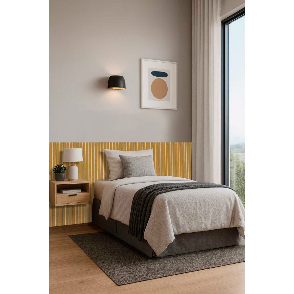 Painel Cabeceira Ripado Autocolante – MDF 3mm Freijó Transforme seu quarto com este painel cabeceira autocolante ripado produzido em plaquinhas individuais de MDF 3mm, acabamento premium na cor Freijó, criando um visual moderno, elegante e extremamente atual. As plaquinhas são fixadas lado a lado, formando um painel contínuo, com frisos finos e alinhamento perfeito que imitam o ripado de marcenaria. Material: MDF 3mm de alta qualidade Cor: Freijó (madeirado quente e sofisticado) Fixação: Autocolante dupla face industrial – instalação rápida, limpa e sem sujeira Montagem modular: Feito com plaquinhas individuais que se encaixam perfeitamente, permitindo personalizar largura e altura Uso: Cabeceira para cama, painel decorativo, destacar parede, agregar estética moderna Visual ripado realista: Frisos estreitos e uniformes mantendo fidelidade à textura original da madeira O painel foi montado conforme o projeto ilustrado, com distribuição equilibrada das placas, formando um conjunto harmonioso e contemporâneo. Ideal para quem busca modernizar o ambiente com praticidade e design de marcenaria sem obras.