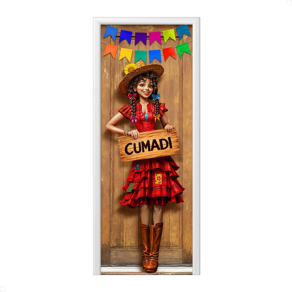 Painel Capa de Porta Festa Junina Banheiro Arraiá Decorativa Retangular Sublimado 0,82x2,1 -PTA-43