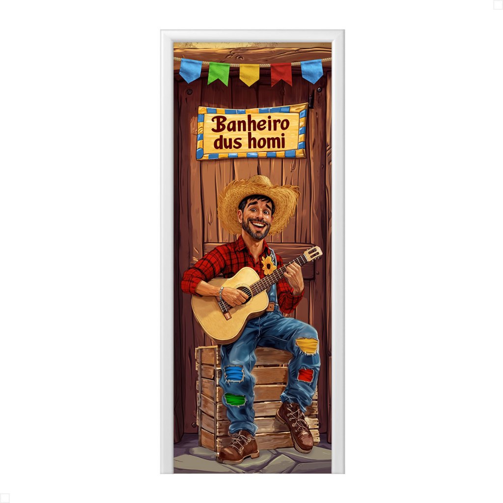 Painel Capa de Porta Festa Junina C/Elástico Decoração Banheiro dus Homi Veste Fácil Tecido 0,85x2,10m - PTA-46
