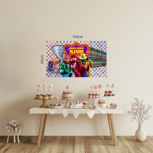 Painel Carreta da Alegria Furacão retangular de lona para decoração de festa de aniversário infantil. Várias medidas.