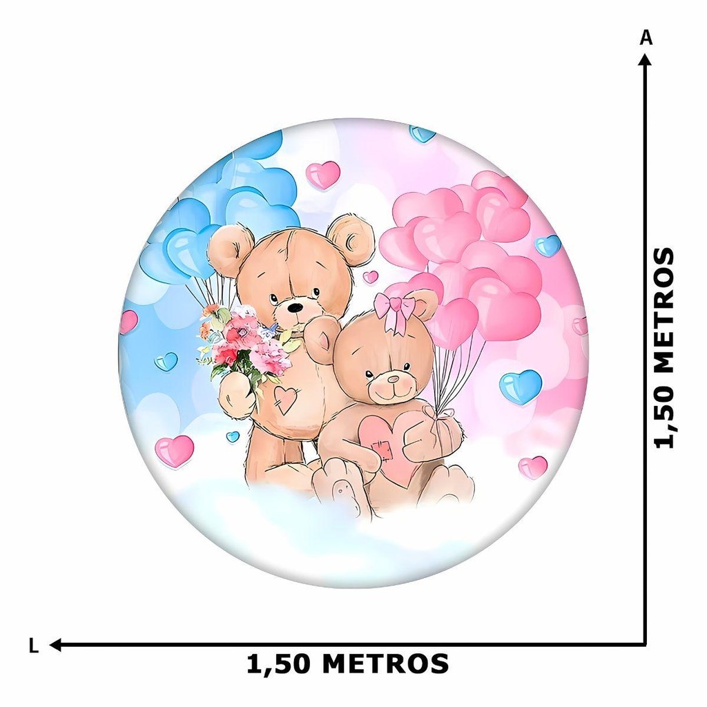 Painel Chá Revelação Ursinho Azul e Rosa Redondo com Tecido Premium Alta Qualidade Veste Fácil 150 cm