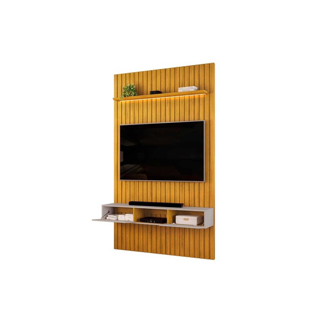 Deixe seu lar ainda mais aconchegante com a DJ Móveis. O Painel com Bancada para TV de até 60 Polegadas Ripado Trento na cor Cedro Bali proporciona um visual sofisticado e moderno para sua sala. Fabricado com madeira de reflorestamento, possui 143 cm de largura, 240 cm de altura e suporta até 40kg. Além disso, conta com iluminação LED horizontal na prateleira e acompanha Bancada em Bali, permitindo decorar melhor seu espaço e organizar seus itens com mais comodidade. Aproveite essa oportunidade e acomode toda sua família e amigos em seu novo cômodo. Dimensões Largura: 143,7 cm Altura: 240 cm Profundidade: 35,5 cm Peso: 59,60 Kg Características Técnicas 2 portas Painel ripado em MDF 1,5 cm Material da estrutura em MDP e MDF Prateleira MDF, com borda chanfrada Acompanha LED horizontal na prateleira Peso máximo suportado: 40Kg painel e 30Kg bancada Suporta TV até 60 Polegadas Observações: Imagens meramente ilustrativas (não acompanha os itens de decoração). As cores do produto podem variar de acordo com monitor e iluminação do ambiente. A DJ Móveis não se responsabiliza pelo serviço de montagem, o produto é enviado desmontado. Produto NOVO, manual de montagem e todos os acessórios necessários para a montagem completa do produto. Perguntas Frequentes: O produto é enviado montado? Todos os produtos da DJ Móveis são enviados desmontados, não realizamos a montagem dos produtos. Você receberá juntamente com o seu produto o manual de montagem e todos os acessórios para a realização da montagem. O produto é novo ou usado? Todos os produtos da DJ Móveis são novos, você receberá o produto novo saindo direto da nossa fábrica. Posso retirar o meu produto em alguma loja física? Não possuímos lojas físicas para retirada de produtos. Qual é o valor do frete? O valor do frete é calculado com base no peso, volume e CEP de destino. Calcule o valor e o prazo de entrega para o seu CEP diretamente no simulador de frete do site. O produto é entregue em qualquer local do Brasil? Sim, entregamos em todo o Brasil através de nossos parceiros logísticos O produto possui garantia? Sim, todos os produtos da DJ Móveis possuem garantia de 6 meses. Manutenção e Limpeza: Para manter seu móvel novo por muito mais tempo, evite locais úmidos, mantenha-o distante de líquidos e de fontes de calor. Evite a exposição prolongada ao sol. Para limpá-lo com segurança utilize uma flanela seca sem produtos abrasivos e nem lustra móveis. Informações importantes: Verifique a qualidade de sua parede antes de fixar qualquer móvel nela. As cores do produto podem variar de acordo com o seu monitor, a iluminação do ambiente em que você está e até mesmo a sua percepção visual. Além da cor pequenos detalhes e acabamentos podem não ficar evidentes na foto, por isso as imagens são meramente ilustrativas. Os objetos decorativos que aparecem na foto não acompanham o produto. A DJ Móveis não se responsabiliza por montagens, desmontagens e instalações dos produtos, bem como subir e descer escadas e elevadores, ou mesmo, por contratação de guinchos ou similares para acesso a pisos superiores no local da entrega.