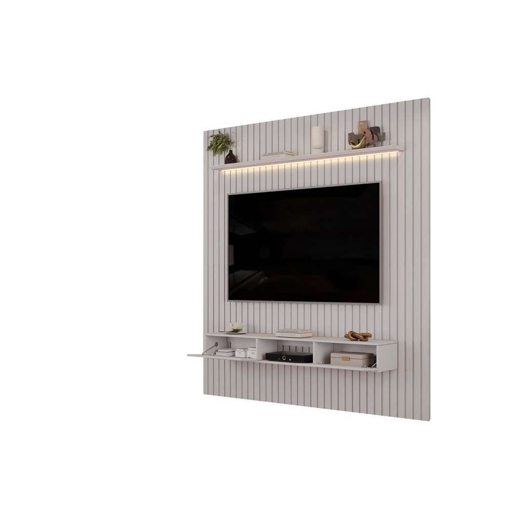 Painel com Bancada para TV até 75 Polegadas Ripado com LED DJ Móveis Trento 223 Bali
