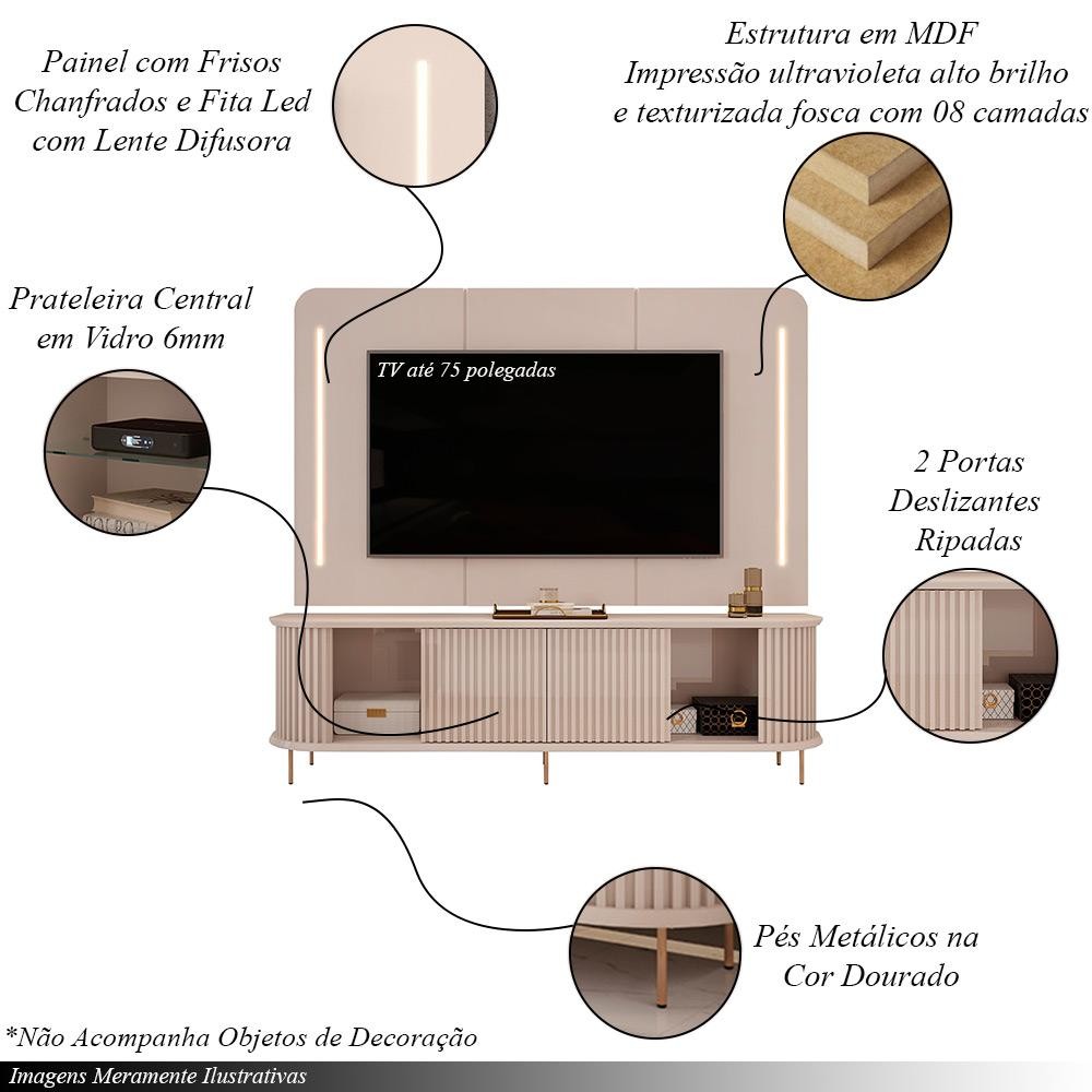 Painel com Bancada Sala de Estar 218cm Saitama para TV até 75 com Portas Ripadas e LED Off White