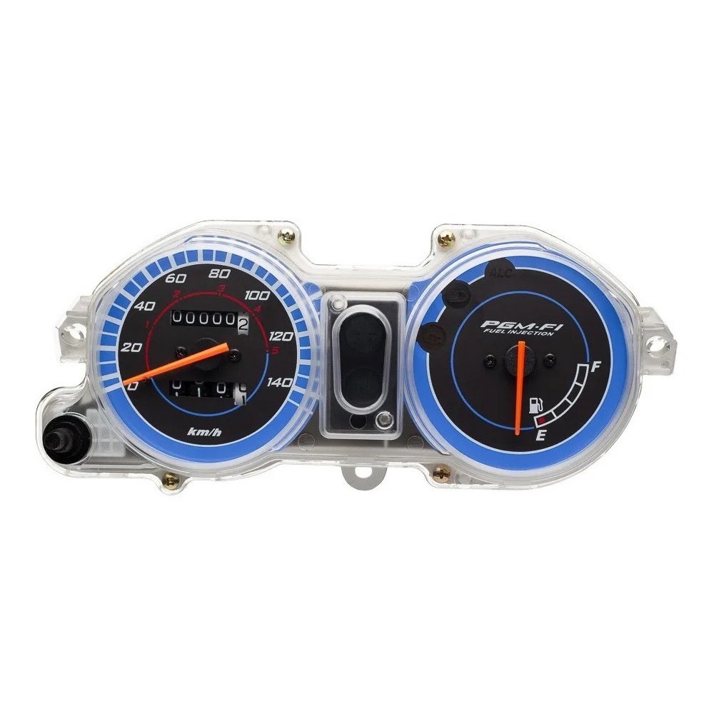 Painel Completo Instrumentos CG TITAN 150 EX FLEX 2011 A 2013 Com velocimetro analogico que mede ate 140km/h ele conta com marcador de combustivel, LEDs indicadores para luz alta, ALC, marcha neutra e injecao eletronica. Alem disso, seu acabamento e perfeito, deixando sua moto impecavel. Especificacao Tecnica: . Velocimetro Analogico . Velocidade Maxima Medida: 140Km/H . Possui Marcador de Combustivel e Odometro Parcial . Possui Luz de Fundo na Cor Ambar . Possui LED Indicador para Injecao Eletronica, ALC, Luz Alta e Marcha Neutra . Mantem o Padrao Original . Ideal para Reposicao . Excelente Qualidade Compativel com: . CG 150 Titan Mix EX 2011 . CG 150 Titan Mix EX 2012 . CG 150 Titan Mix EX 2013