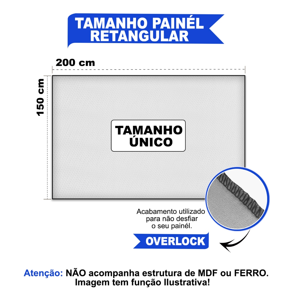 PAINEL RETANGULAR SUBLIMADO EM TECIDO PARA DECORAÇÃO DE FESTA 2,0M X 1,5M, SISTEMA VESTE FÁCIL, PRÁTICO DE USAR. ITEM INCLUSO: 1 Capa de Painel Retangular em Tecido. • OBSERVAÇÃO: Todos os nossos produtos não acompanham estrutura/suporte. BENEFÍCIOS DOS PAINÉIS CLICK TEXTIL: • Sem emenda. • Arte Exclusiva. • Alta durabilidade. • Não reflete à luz. • Ótima elasticidade. • Não amassa - tecido Premium. • Não desbota, pode ser lavado. • Instale em uma estrutura circular rapidamente. DICA DE USO: • Para utilizar o Painel de Festa recomendamos que tenha uma estrutura/suporte, prendedores ou fita! • Usados em decorações de aniversário, confraternização, eventos e festas em geral. FICHA TÉCNICA: • Tecido Leve com ótimo caimento • Tecido Malha Premium (Que estica e não amassa). • Composição do Tecido: 100% Poliéster • Gramatura: 135g/m² de excelente qualidade. • Acabamento em overloque evitando que o painel desfie. CONTAMOS COM: Uma Impressão de altíssima qualidade, cores vivas, imagens nítidas e um ótimo acabamento, o painel redondo da Click Têxtil tem os detalhes perfeitos para ter o resultado incrível em sua decoração. Todo o desenvolvimento pensado para a sua festa, deixando sua decoração muito mais cheia de vida! ATENÇÃO AOS PRODUTOS • PAINÉIS COM TEXTURAS DE GLITTER, FOLHAGEM (MURO INGLÊS) E LANTEJOULA: • Todos os nossos produtos são sublimados, ou seja, estampados em tecido, sendo assim estes temas não possuem glitter, folhagem ou lantejoula verdadeiros, são produzidos em altíssima qualidade, dando um aspecto 3D imitando as texturas reais. --------------------------------------------------- DÚVIDAS FREQUENTES: TEM GARANTIA? Tem garantia contra defeito do fabricante. ACOMPANHA ESTRUTURA? Não acompanha estrutura/suporte. PODE PENDURAR? Pode ser pendurada na parede. TRABALHAM COM PERSONALIZAÇÃO? Sim! Fazemos a personalização, vendemos somente os painéis anunciados nos anúncios, porém para artes personalizadas te enviaremos o link para compra no nosso chat. QUANDO É FEITO O ENVIO? Trabalhamos com produtos à pronta entrega, comprando e sendo aprovado no dia (PIX, CARTÃO DE CRÉDITO ou DÉBITO) o envio já é feito no próximo dia útil. • TEM ALGUMA DÚVIDA ANTES DE FINALIZAR SUA COMPRA? ENVIE UMA MENSAGEM PARA NÓS QUE AJUDAREMOS VOCÊ! •