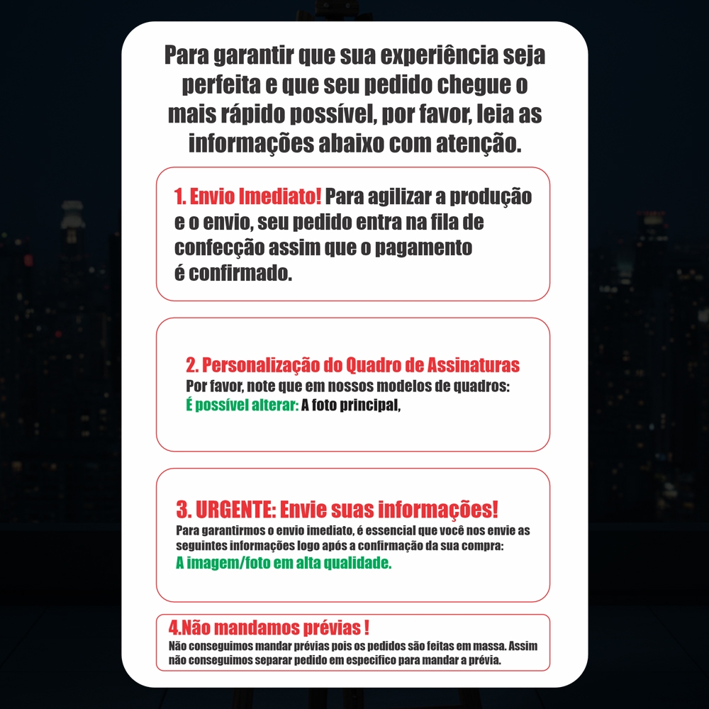 Transforme sua foto em um quadro grande personalizado 60x40cm com impressão de alta qualidade e envio rápido. Ideal para decorar com estilo e exclusividade. Se você procura um quadro grande personalizado com sua própria imagem, chegou ao lugar certo. Este produto é ideal para quem deseja eternizar momentos especiais com impressão de alta qualidade, acabamento profissional e entrega rápida. Com tamanho de 60x40cm, o quadro se destaca em qualquer ambiente, seja na sala, quarto ou escritório. A personalização é feita com sua foto, garantindo exclusividade e estilo único. É a escolha perfeita para quem valoriza decoração personalizada e quer transformar lembranças em arte. Quadro grande personalizado é uma das palavras-chave mais buscadas por quem deseja decorar com personalidade. E aqui, você encontra isso com qualidade superior e atenção aos detalhes. A impressão é feita em material resistente, com cores vivas e durabilidade garantida. Enviamos com agilidade para que você receba seu quadro o quanto antes e já possa exibir sua imagem com orgulho. Tamanho grande 60x40cm: destaque visual garantido em qualquer ambiente Personalização exclusiva: sua foto impressa com qualidade profissional Impressão de alta qualidade: cores vivas, nitidez e acabamento impecável Decoração com identidade: transforme sua imagem em arte decorativa Envio rápido: produção ágil e entrega eficiente para todo o Brasil Estoque limitado: garanta já o seu antes que acabe Produto exclusivo: feito sob demanda, cada peça é única