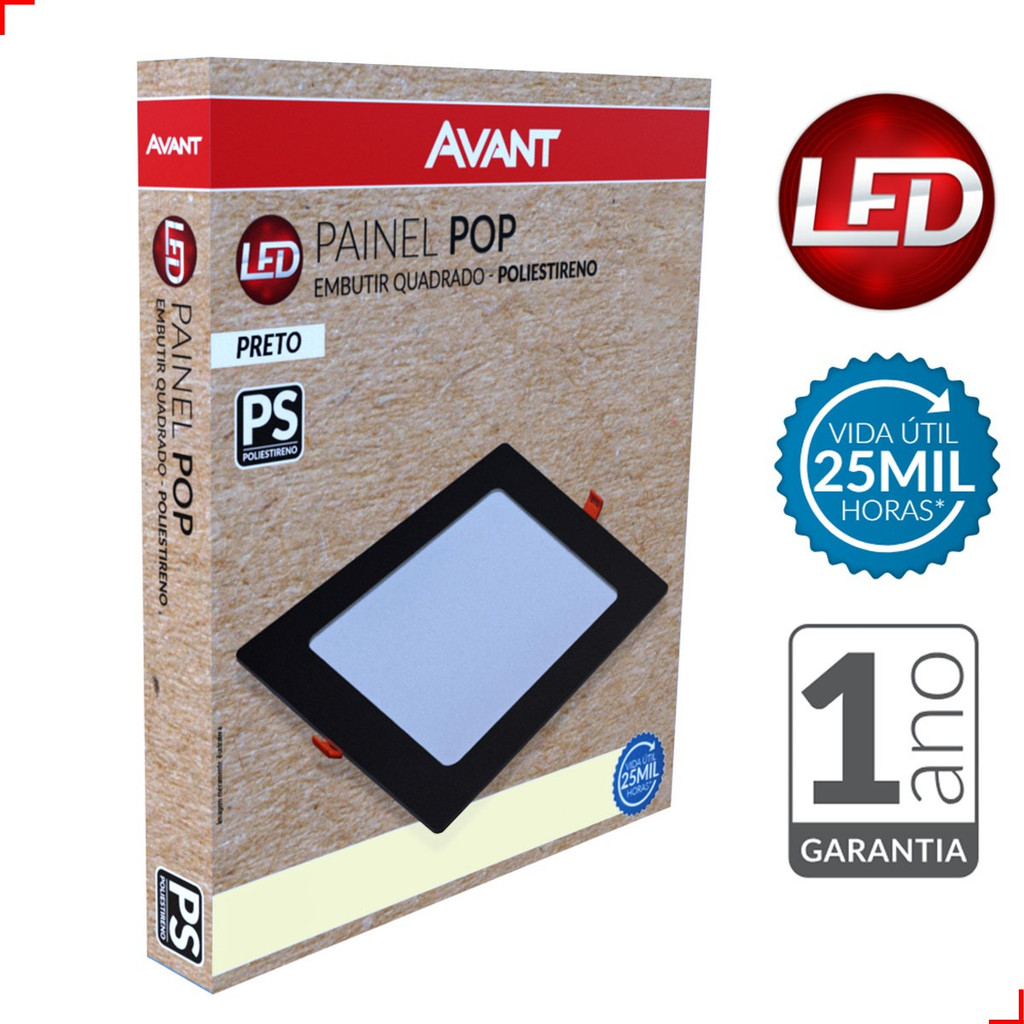 Painel De Embutir 18w Led Quadrado Preto 3000k A 6500k Avant
